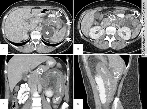Rezidivierende ödematöse Veränderungen im Gastrointestinaltrakt, die zu einer Obstruktion und zum (Sub)Ileus mit rezidivierendem Erbrechen/Reflux oder Stuhlverhalt führen. Diese Ursachen sind möglich.