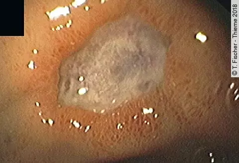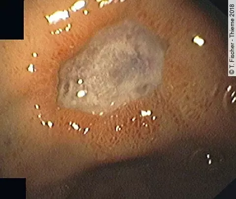 Ein 54-jähriger Patient stellt sich mit über 2 Tage anhaltendem Teerstuhl vor. Puls und Blutdruck sind normal, in der rektalen Untersuchung konnte kein Teerstuhl mehr nachgewiesen werden. Der Hb-Wert ist ebenfalls normal.