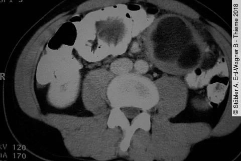 Die 70-Jährige stellte sich mit dem klinischen Bild eines akuten Abdomens in der Notaufnahme vor. Sie gab progrediente Bauchschmerzen seit 5 Tagen an. Bei der klinischen Untersuchung ergaben sich abdominal eine diffuse Abwehrspannung und fehlende Darmgeräusche. Das Basislabor erbrachte keinen wegweisenden Befund. Es erfolgte eine…